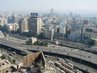 The usual hotel had over-priced itself so I'm trying the Ramses Hilton. Old but hopefully not too bad, I'm sure it will be okay for a few days as long as the flea bite I just got is the only one. Instead of a Nile view, I decided it was time for a city view and do I have a great one! I'm on the 26th floor and this is the direct view from my balcony: